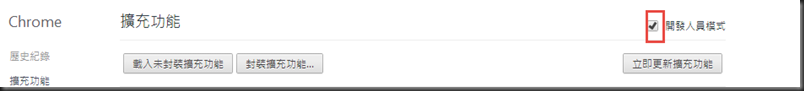 2.設定chrome為開發人員模式,在瀏覽列輸入 chrome://extensions/