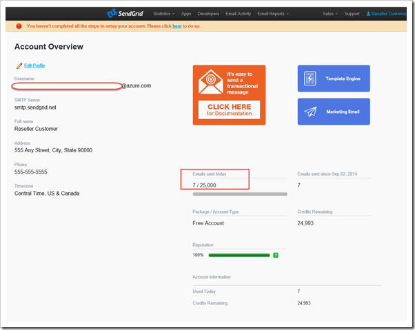 點選下方的MANAGE會連結到SendGrid提供的查詢介面一進入的畫面顯示我今天發了幾封